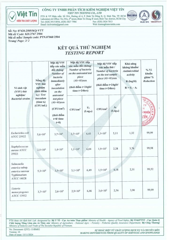 Kết quả này có được nhờ công nghệ nano bạc tiên tiến – các hạt bạc kích thước siêu nhỏ (~25nm) có khả năng ức chế các loại vi khuẩn gây hại, đặc biệt hiệu quả với E. coli và Staphylococcus – hai tác nhân phổ biến gây tiêu chảy và nhiễm trùng ở trẻ nhỏ.